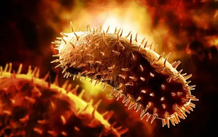 Вирус Эбола. Очень быстро размножается. Вирус вызывает геморрагическую лихорадку. Смертность человека составляет 42%