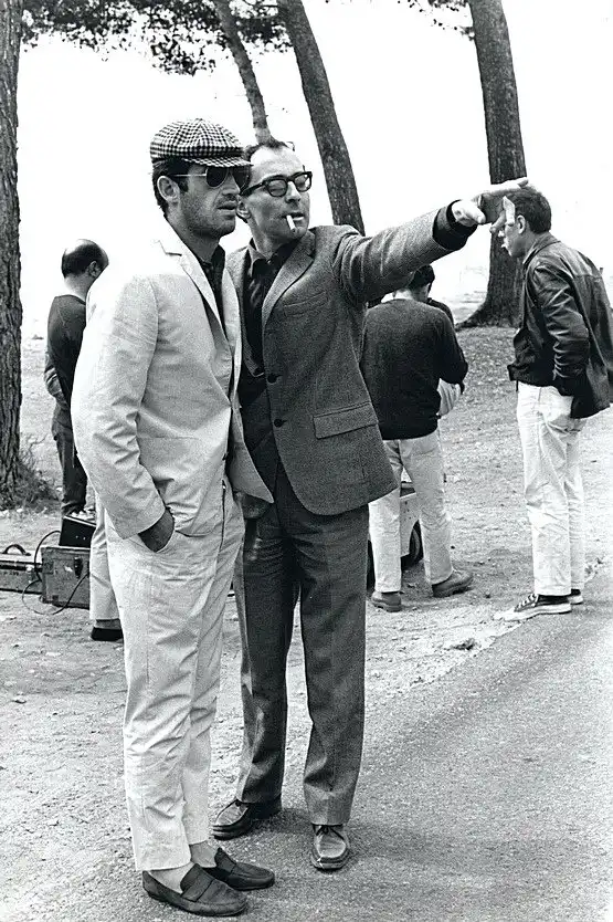 Жан-Люк Годар и Жан-Поль Бельмондо на съемочной площадке
