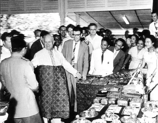 Президент Индонезии господин Сукарно и Никита Хрущев на выставке местных промыслов, Индонезия, о. Бали, 1960 год