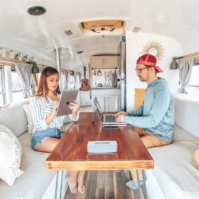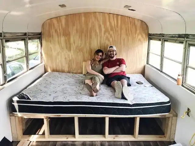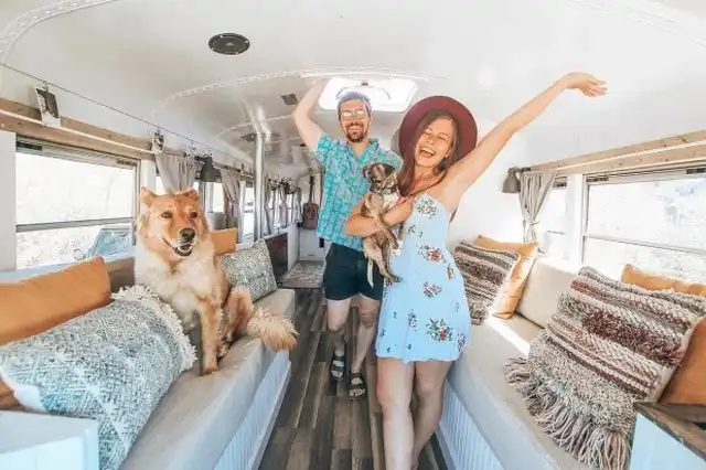 Пара собралась и ушла с работы, вдохновившись просмотром видео на YouTube, где люди бросают всё и уезжают на встречу своей мечте. Они приобрели старый школьный автобус за 3000 долларов, переоборудовали его, вложив около 16 000 долларов, и отправились в путешествие по стране. Как сообщает "The Sun", им удалось поместить в автобус все необходимое для комфортной жизни. Здорово получилось, смелая идея и отличное воплощение.
