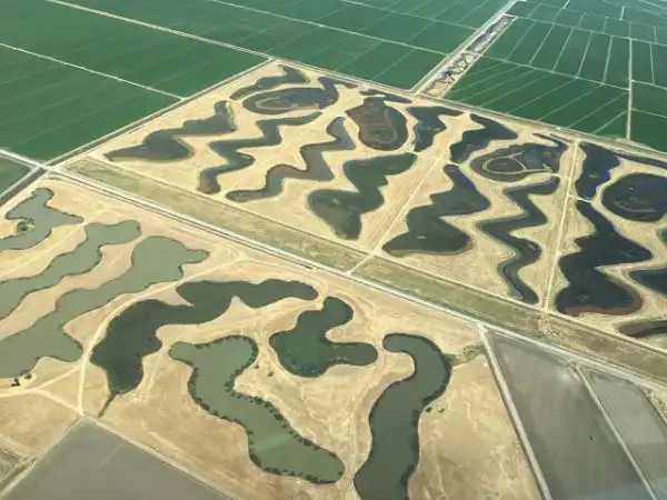 Нет. это не проделки инопланетян. Это всего лишь искусственно созданные болота, в которых обитают ястребы, журавли, цапли и другие животные, живущих в такой среде.