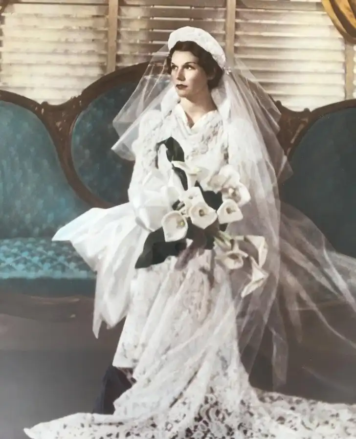 «Несмотря на то, что в день ее бракосочетания был настоящий буран, бабуля просто сияла. 1940 год»