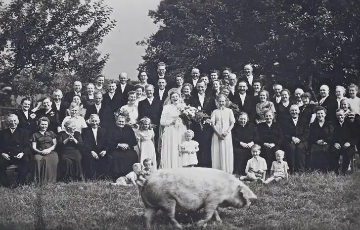 Бонус: «Свинья испортила групповое свадебное фото моих дедушки и бабушки, 1927 год»