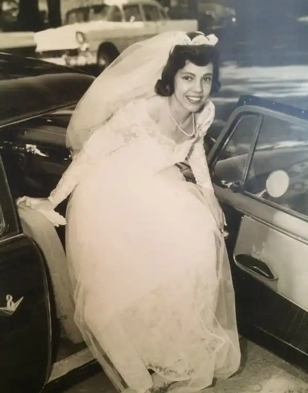 «Моя красавица бабушка в своем свадебном платье, 1957 год»