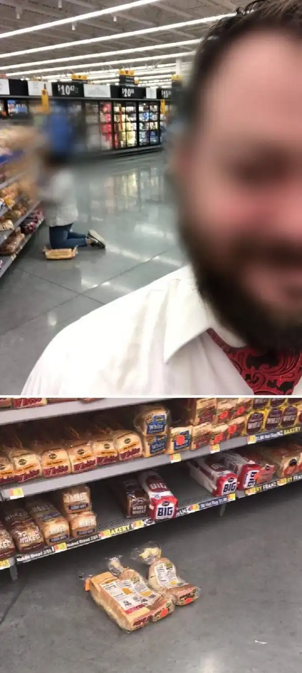 Для того, чтобы не пачкать колени, женщина подложила под них хлеб:
