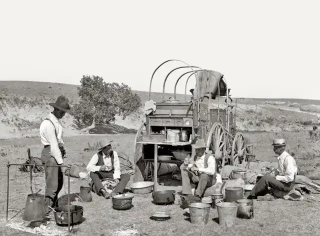 Ковбои у чак-вагона на ранчо в Техасе, 1901 год.