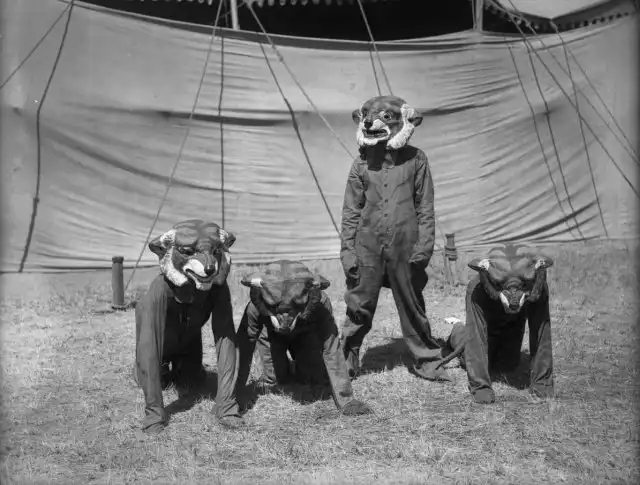 Цирковые артисты в костюмах тигров. Чикаго, 1898 год.