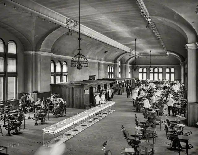 Студенты дантисты в стоматологическом зале Университета Пенсильвании. Филадельфия, 1904 года.