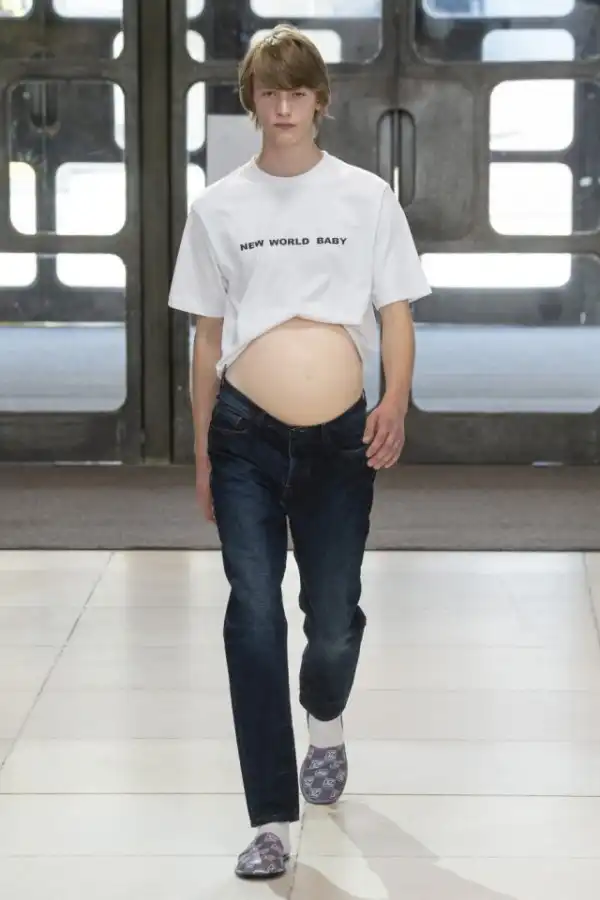 Мода, пожалуйста прекрати! На лондонской Неделе моды на подиум вышли "беременные мужчины"