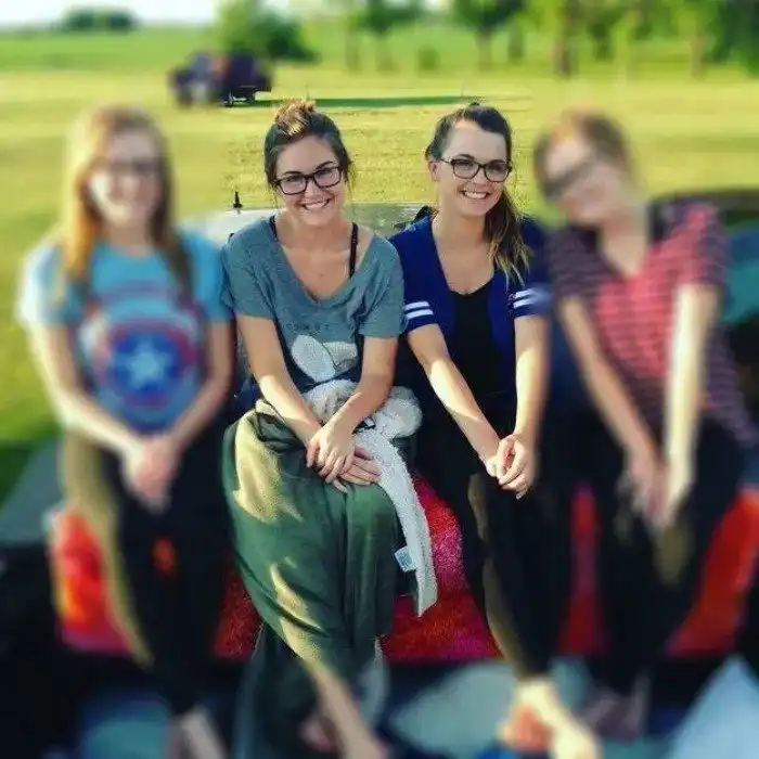 "Наши настоящие сёстры сидят по краям, а центре сидим я и моя подруга Кортни"