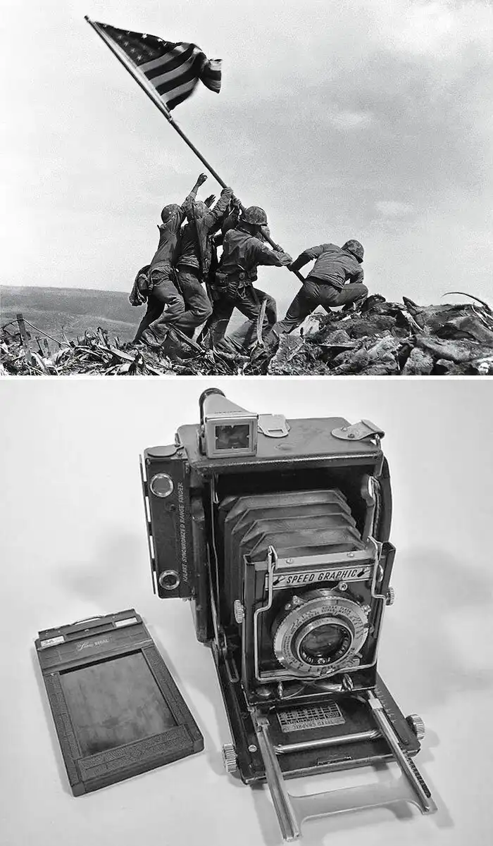 12. "Водружение флага над Иводзимой", Джо Розенталь, 1945 год. Камера Speed Graphic