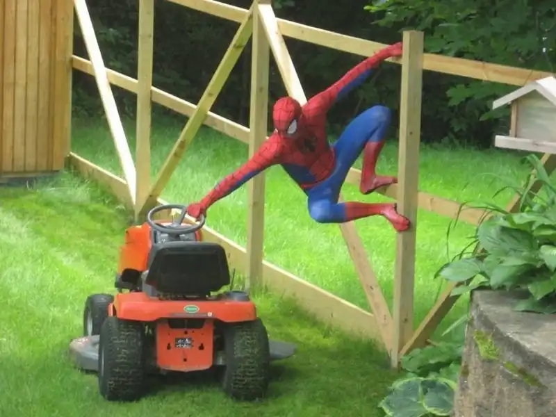 Каждый раз подстригая газон, этот парень веселит соседей необычным перфомансом. Среди "садовников" уже были замечены Фредди Крюгер, Человек паук и даже манекен для теста безопасности автомобилей. С таким соседом скучно не будет.