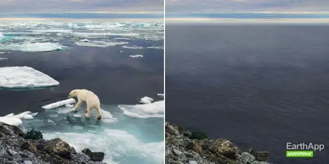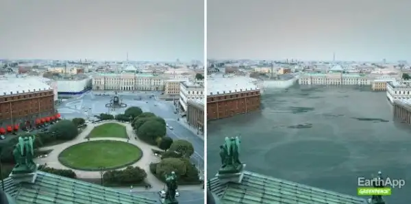 Грустный проект от российского отделения Greenpeace. Они "состарили" землю, почти как в приложении FaceApp. В представлении Greenpeace: Байкал обмелеет настолько, что станет лужей, Арктика просто напросто растает, а площадь перед Исаакиевским собором в Санкт-Петербурге будет затоплена.