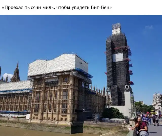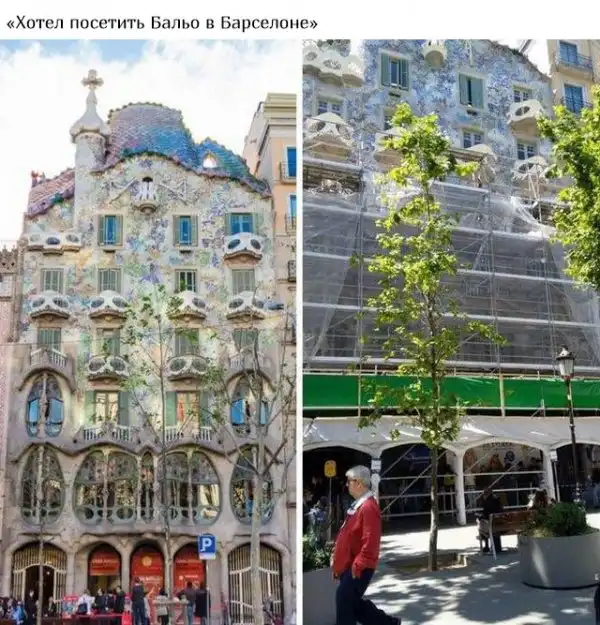 Когда приехал полюбоваться достопримечательностью, но на самом деле увидел совсем не то, что ожидал. Представляете, вы преодолеваете большой путь, предвкушаете, что сейчас насладитесь шикарным видом или наконец-то сможете своими глазами увидеть достопримечательность или визитную карточку страны... Но тут в ваши планы вмешивается погода или реконструкция... Обидно.