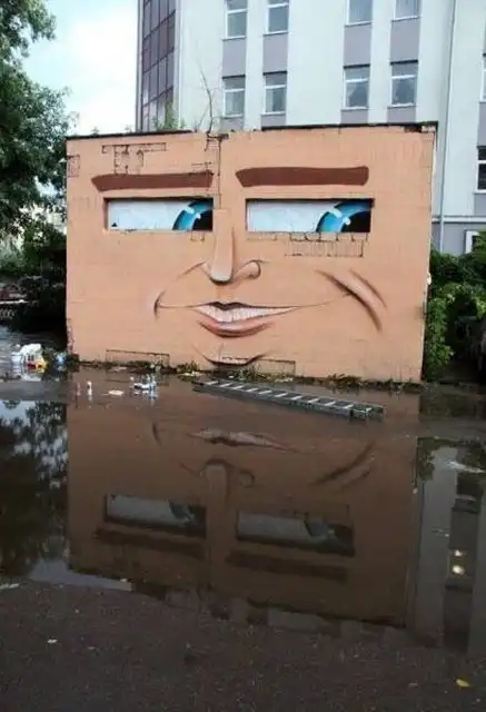 Художник Никита Nomerz украшает здания своими рисунками. Он словно придает строениям свой характер. Порой они немного пугают, ведь некоторые из рисунков смотрятся довольно тревожно. А представьте, как они выглядят ночью. Но все равно работы Никиты очень интересны и это уж точно лучше, чем скучные однотонные стены.