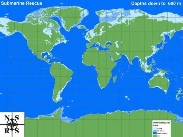 5. Синим обозначены регионы, где глубина воды достаточная для расположения в них подводной лодки