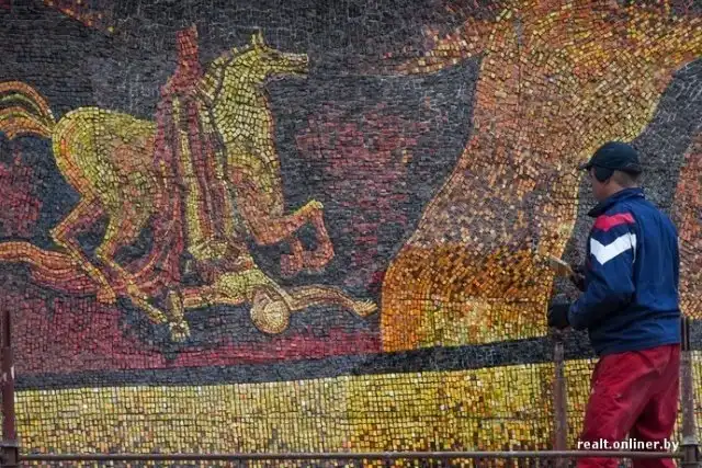 После просмотра этой новости, захотелось с вами поделиться историей из Белоруссии. В Минске в 2015 году реставрировали панно "Беларусь партизанская" на гостинице "Турист". Там не стали использовать современные материалы для того, чтобы спрятать картину за серой облицовочной отделкой. Тут приложили немало усилий, чтобы дать историческому образу новую жизнь. Вот это правильный пример реставрации и уважения к истории.