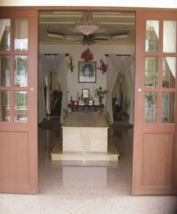 В холле этого дома находится самое настоящее захоронение, история появлений которой невероятно печальная. В 1960-м году местная жительница родила дочь. Семья была невысокого достатка, но они старались, как могли. Дочь выросла и когда девочке исполнилось 18 лет, она влюбилась во владельца рыбацкой лодки, а через три года они уехали с мужем в США. В Америке она сначала работала мастером маникюра, а затем даже стала дизайнером интерьеров. Девушка хорошо зарабатывала и могла себе позволить обеспечивать свою семью. В начале 2000-х годов во время посещения родного дома, она рассказала своей семье, что хочет вернуться обратно и попросила их построить просторный особняк, семейное гнездо, где бы они могли жить вместе.