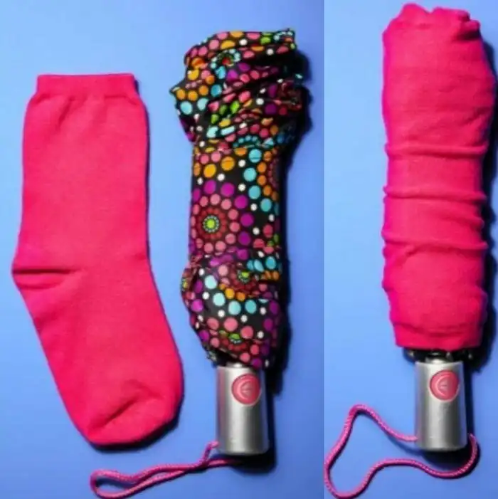 13. Если нет чехла на зонт, то можно на мокрый после прогулки надеть пакет, а сверху обычный носок: и сухо, и стильно