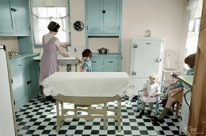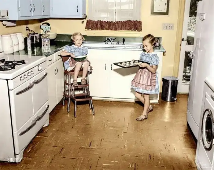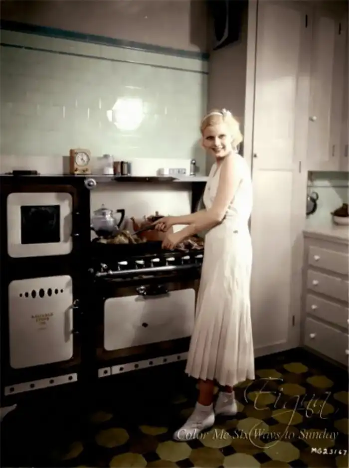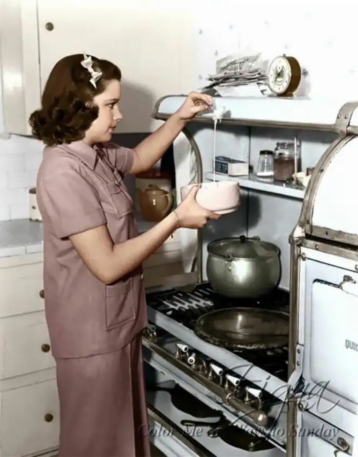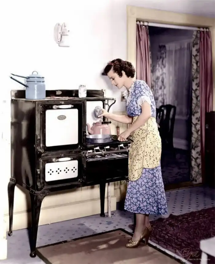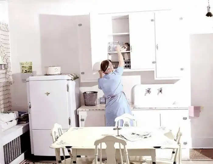 Энтузиасты раскрасили и опубликовали подборку бытовых фотографий первой половины ХХ века, изображающих кухни в самых обычных семьях. Как же выглядели кухни тех времен, и сильно ли они отличались от привычных нам?