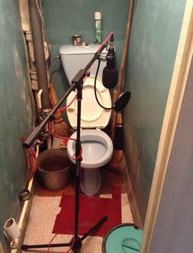 Не всем по карману записываться в студии, поэтому народ пытается сделать это в домашних условиях. Помимо необходимых музыкальных инструментов (микшер, микрофон, миди-клавиатура и т.д), в ход идут поролон, упаковки для яиц и старые одеяла. Некоторые умудряются забацать домашнюю студию в клозете.