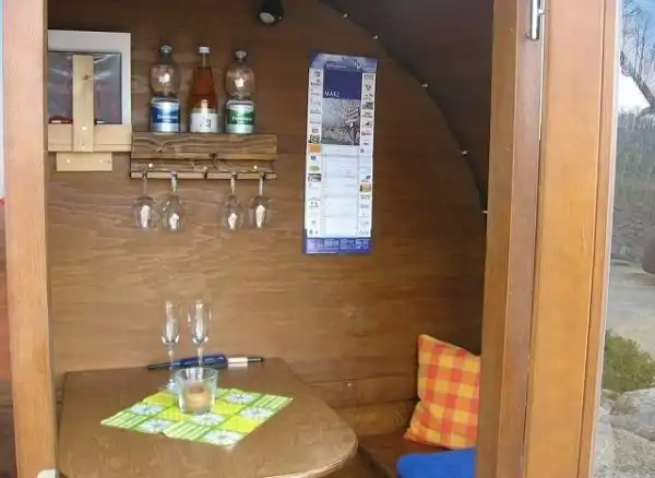 Комплексом владеет семья Вильд. Они культивируют около 6 гектаров виноградника и 1,5 гектара фруктового сада. Так что всех гостей Schlafen im Weinfass угощают вином, ликерами и настойками собственного производства. Каждый номер состоит из двух бочек, которые превратили в спальню и гостиную со всеми удобствами. Еще одна милая деталь - завтрак подается в корзинах.