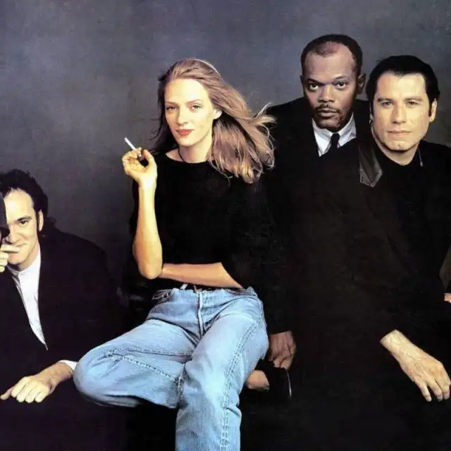 Великая компания: Квентин Тарантино, Ума Турман, Сэмюэл Л. Джексон и Джон Траволта, октябрь 1994 года.