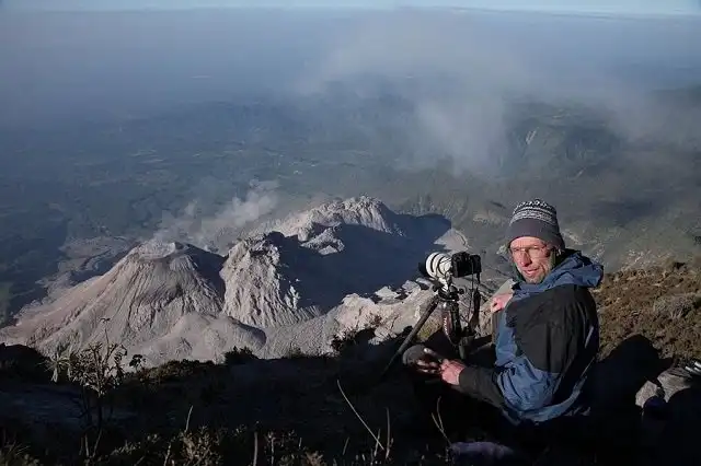 Мартин Рейтце, 55-летний фотограф и путешественник из Мюнхена. Он отправился на Сахалин, чтобы снять редкое и потрясающее чудо природы - вулканическую молнию. Мартин приехал к вулкану Эбеко в надежде запечатлеть "грязную грозу" и у него получилось сделать несколько удивительных кадров, которыми теперь любуется весь мир. Рейтце поведал, что он прождал порядка семи часов в ожидании извержения и ему улыбнулась удача. Мартин отметил, что вулкан начал извергаться, когда он стоял всего в паре километров от северного кратера.