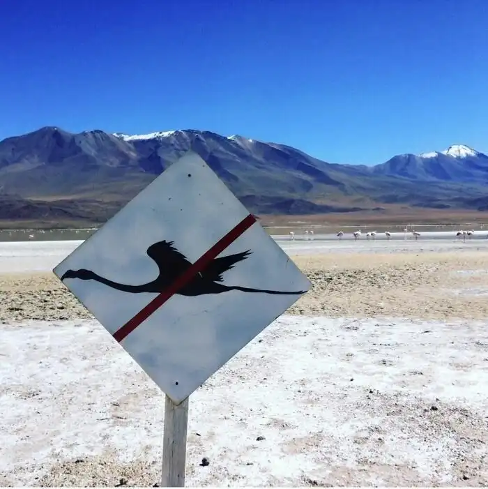Ответ: "Не пугайте фламинго". Соответственно, заходить за знак запрещено.