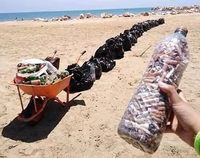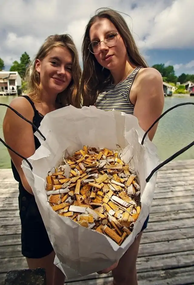 2. Девушки собрали примерно 5 литров окурков на берегу моря в Ле-Туке