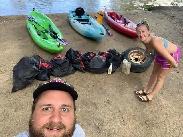 3. Пара использовала каяки, чтобы достать весь этот мусор из реки