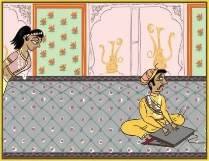 Муж судорожно бросается закрывать свой ноутбук при появлении жены, чтобы она не увидела его личную переписку.