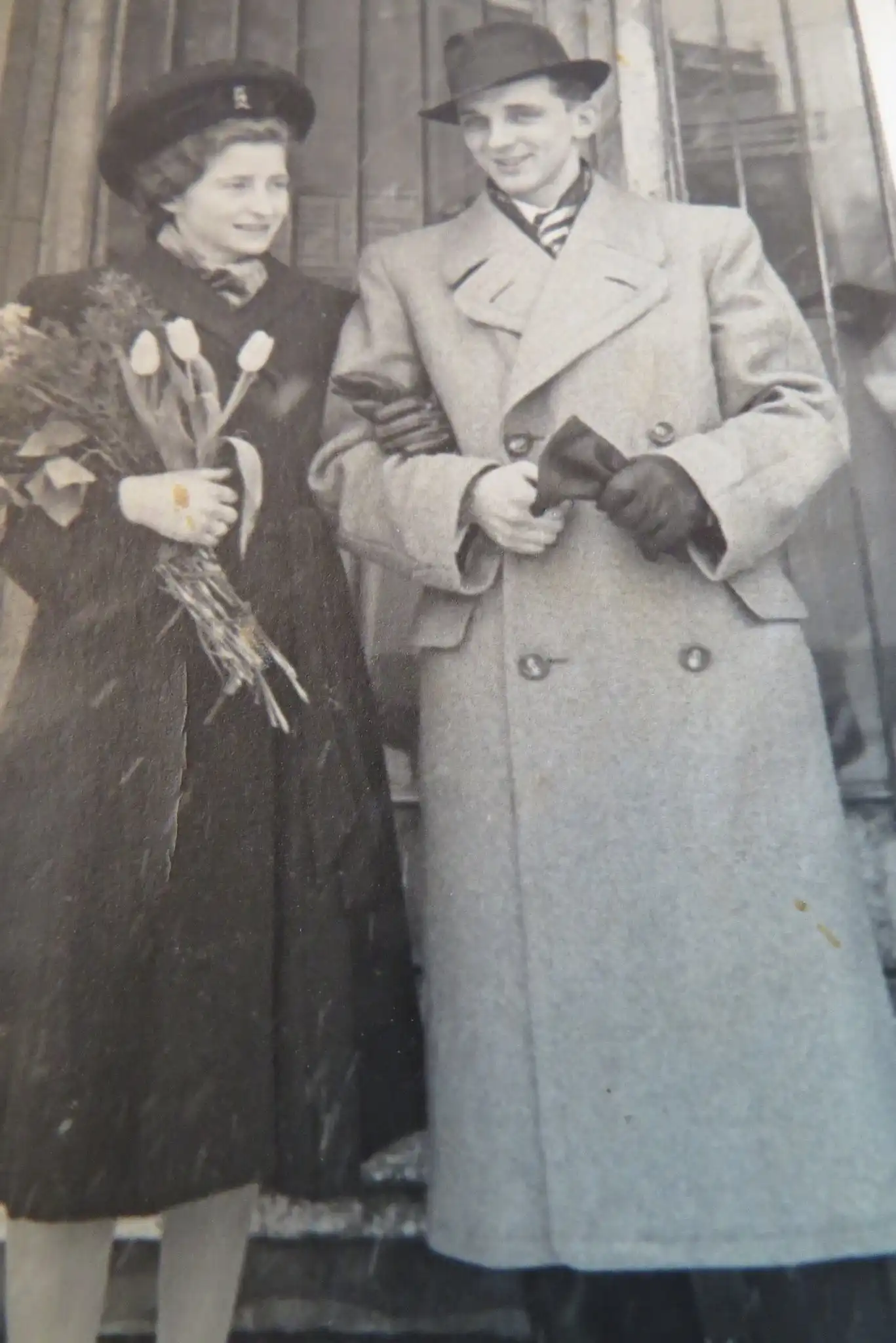102–летний тренер по плаванию, в прошлом ефрейтор Вермахта Леопольд Кухвалек и его Хильдегард в день свадьбы, 1942 год, Германия