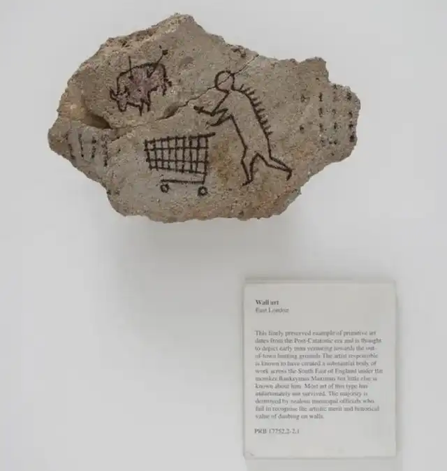 14. В 2005 году Бэнкси повесил в Британском музее свою работу с «наскальной живописью». Уже через несколько дней ее обнаружили смотрители