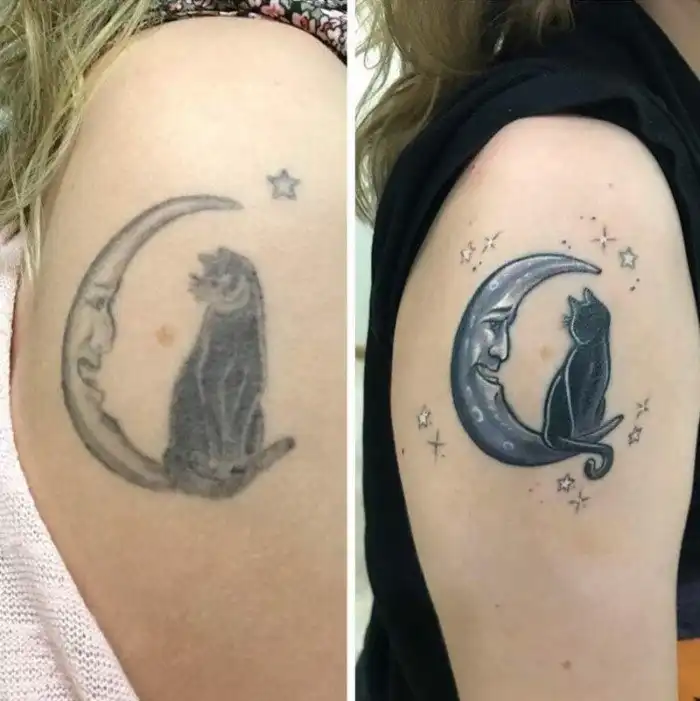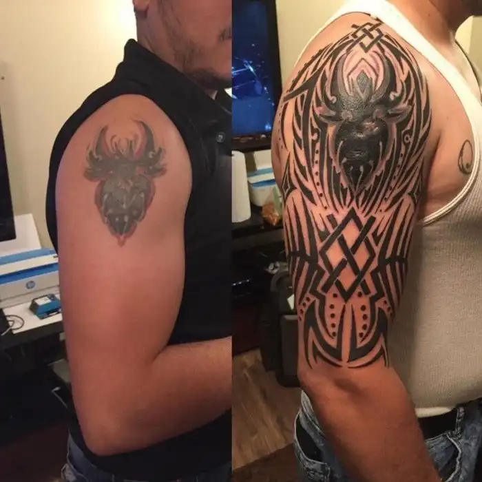 Старая или неудачная татуировка – это не приговор, а повод набить что-то новое. Сейчас очень много мастеров, которые готовы исправить ошибки прошлого и сделать на теле настоящий шедевр. Пользователи сети постоянно делятся результатами перекрытия своих неприглядных татушек. Кто-то добавляет детали к старым рисункам, а другие кардинально меняют сюжет, перекрывая его чем-то новым. В любом случае получается здорово!