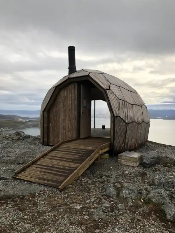 Представляем вашему вниманию проект студии SPINN Arkitekter - два, непримечательных на первый взгляд, домика для подразделения Норвежской ассоциации трекинга (DNT) в городе Хаммерфест. Площадь конструкции всего 15 квадратных метров. Дома представляют из себя скромную хижины с отоплением, созданные для популяризации пешеходного туризма в горах. Домики соответствуют рельефу местности, предлагают качественную деревянную отделку, дровяную печь, простые скамейки. Такой минимализм создан не просто так.Туриста ничего не должно отвлекать от умопомрачительных видов, которые открываются через панорамное окно.