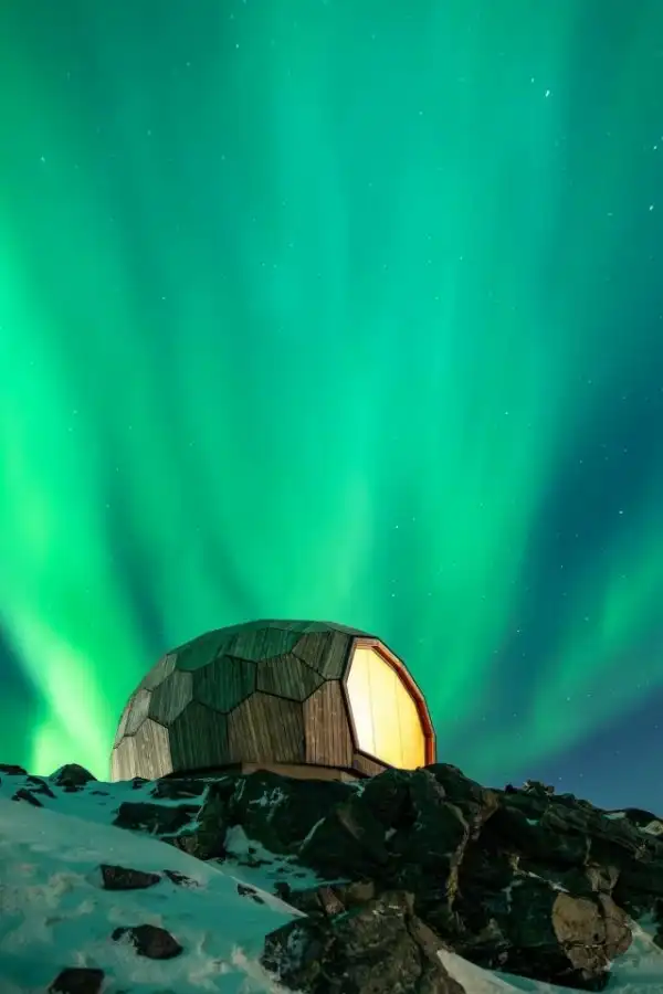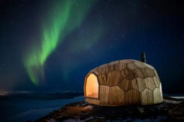 Несмотря на всю скромность постройки, дом способен выдержать суровые полярные ночи с экстремальными ветрами в зимний период, а также обеспечить туристов теплом и уютной обстановкой. Ламинированный деревянный корпус с 77 уникальными панелями подходят друг другу как 3D-головоломка.