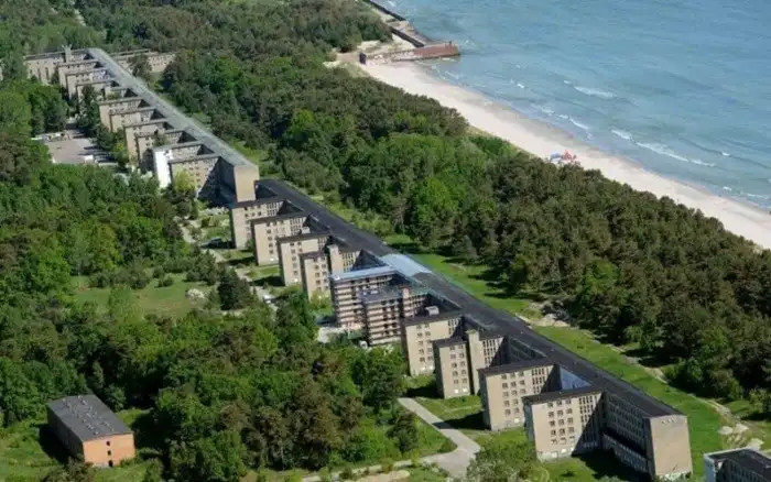 Комплекс простирается на три километра вдоль белого песчаного пляжа на немецком острове Рюген в Балтийском море. Цель состояла в том, чтобы обеспечить досуг немецким рабочим и распространить нацистскую пропаганду. Местные жители называют комплекс “Колоссом” из-за его монументальных размеров.