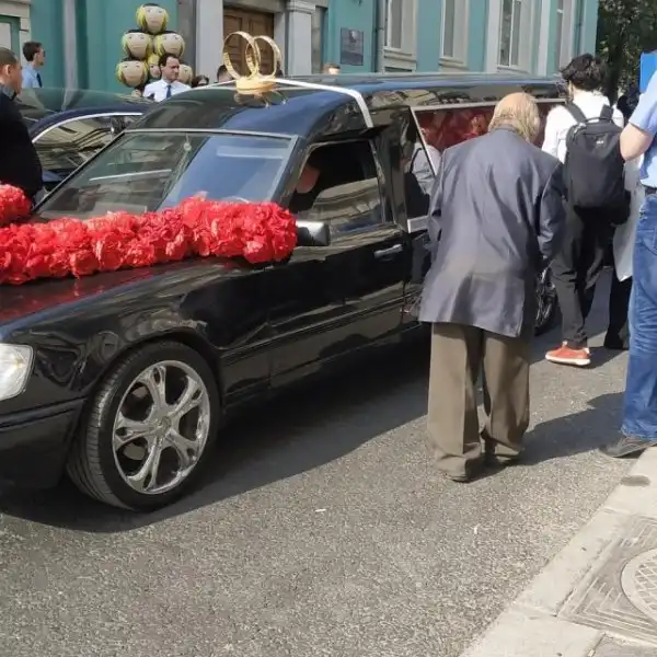 Жених и невеста подкатили к ЗАГСу около 11 часов утра на катафалке с надписью «Пока смерть не разлучит нас».