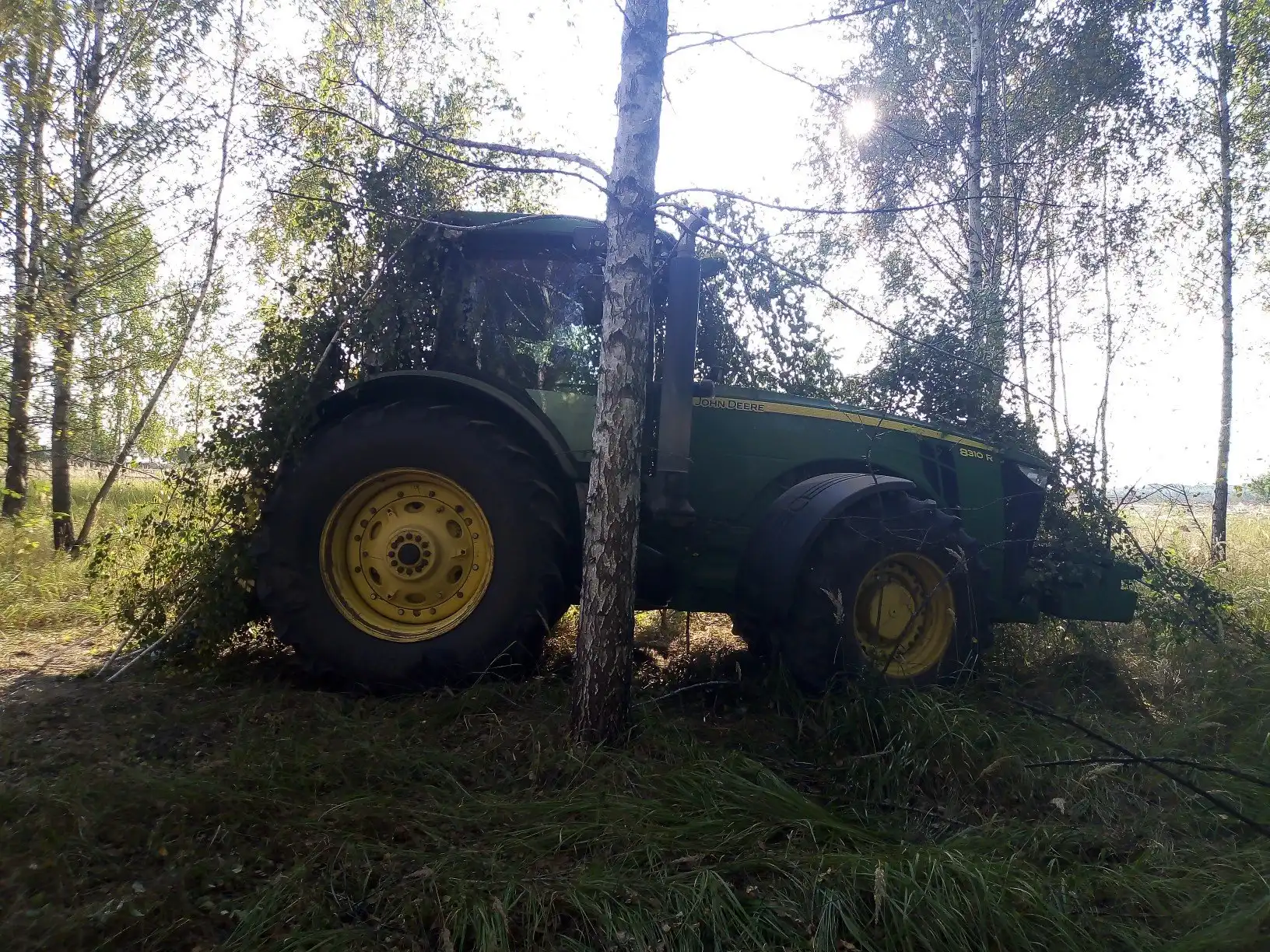 Тогда тракторист притащил веток и обложил ими машину. Со стороны поля кажется, что никакого трактора там нет – зелень ничем не отличается от кустарника.