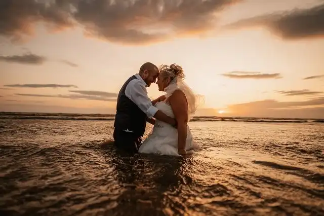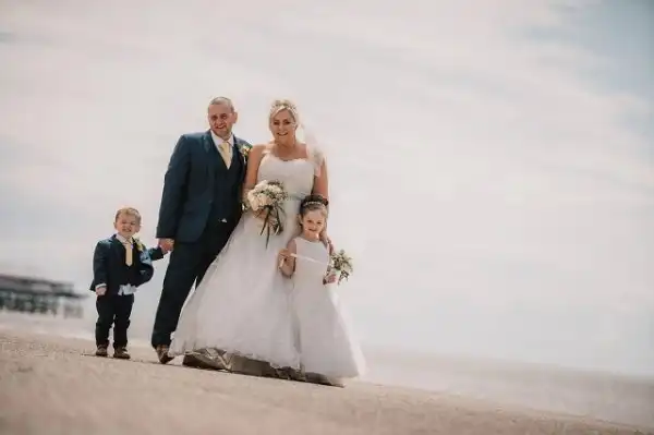 Желание невесты - закон. 44-летняя Анджела и 46-летний Марк Браун из британского города Блэкпул сыграли свадьбу. А чтобы это радостное событие запомнилось на долгие годы, нужно заказать фотосессию. Как мы знаем большинство свадебных фотографов снимают весьма однообразно. Поэтому Анджела захотела отличиться. Супруги, а также их детишки: 4-летняя Дейзи и 2-летний Чарли, отправились на пляж, чтобы провести там фотосессию. Британка надела свое дорогущее платье за тысячу фунтов для того, чтобы его... полностью испоганить. Но, как сказала Анджела, оно того стоило.