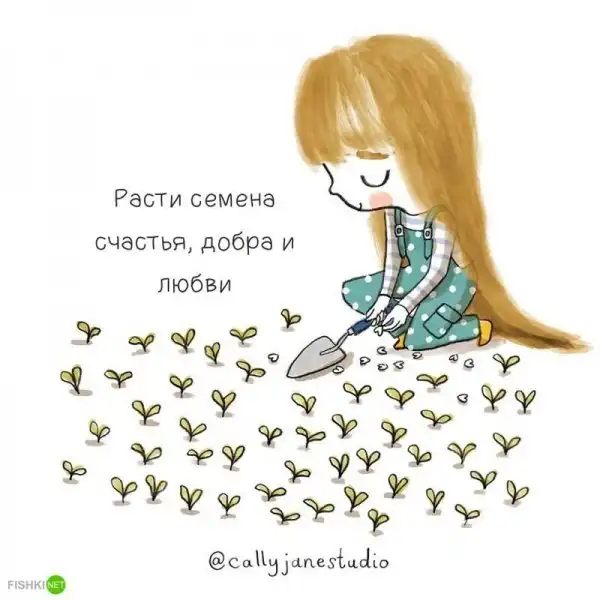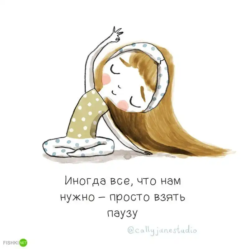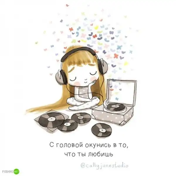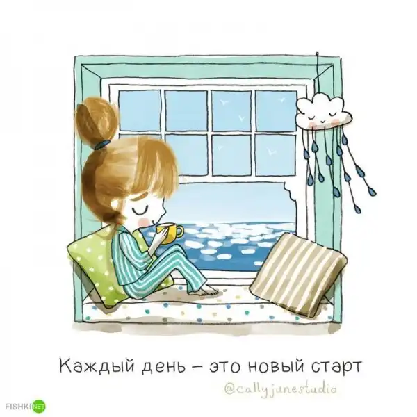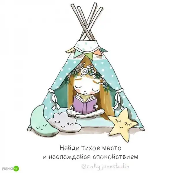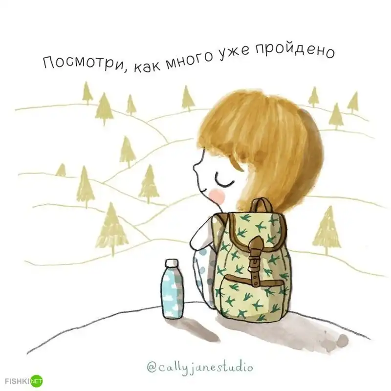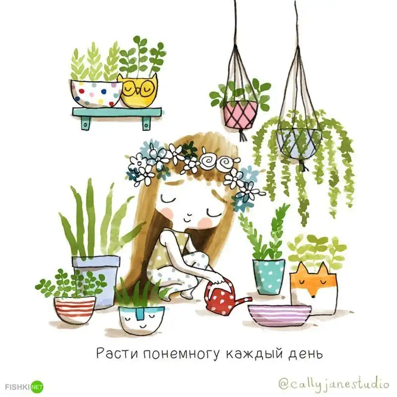 Британская художница и иллюстратор детских книг по имени Калли (Cally) обожает свою работу. В свободное время она занимается йогой, и рисует удивительные мини-комиксы с участием своей маленькой музы. Героиня ее рисунков - девушка, которая любит йогу и находит счастье и вдохновение в каждом дне. Как же нам иногда не хватает такого простого вдохновения в ежедневной суете..