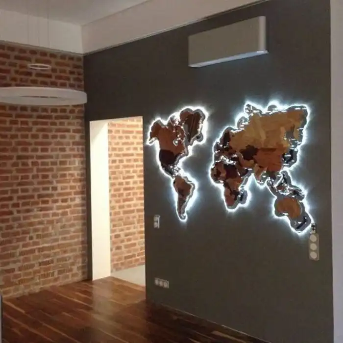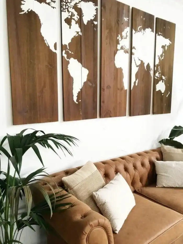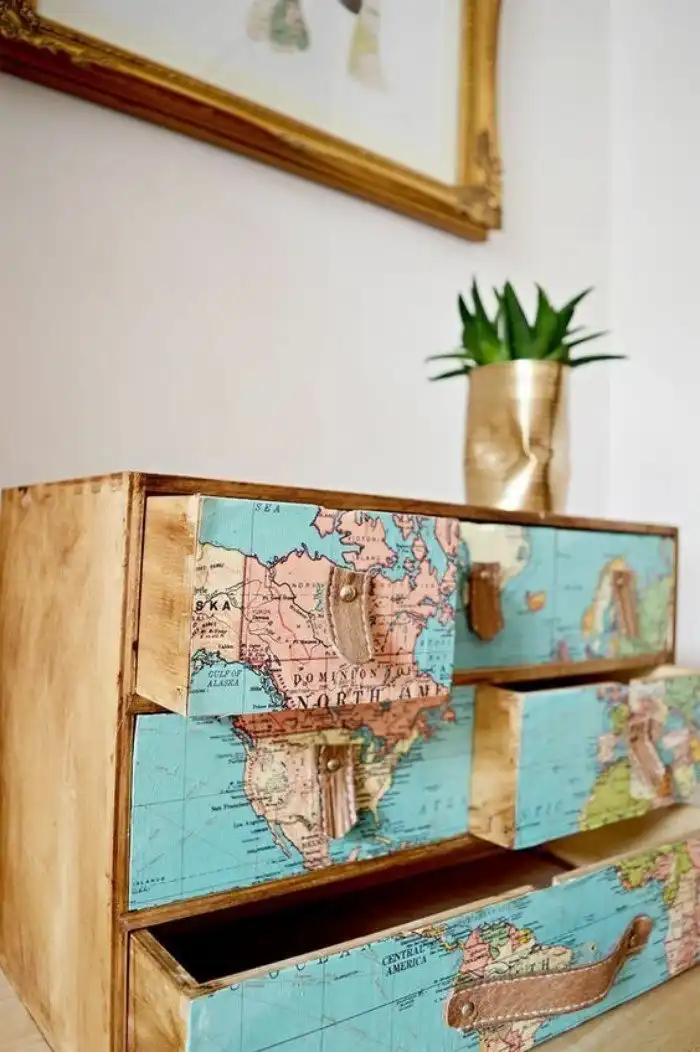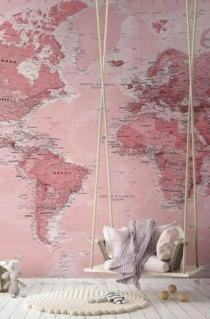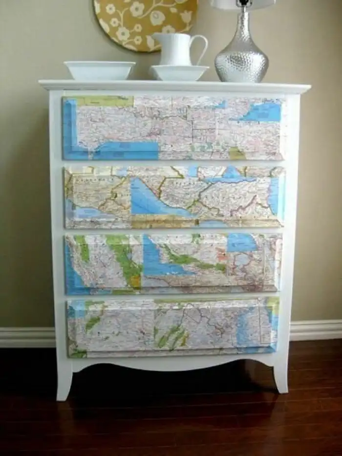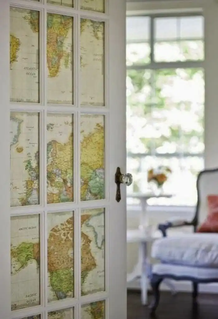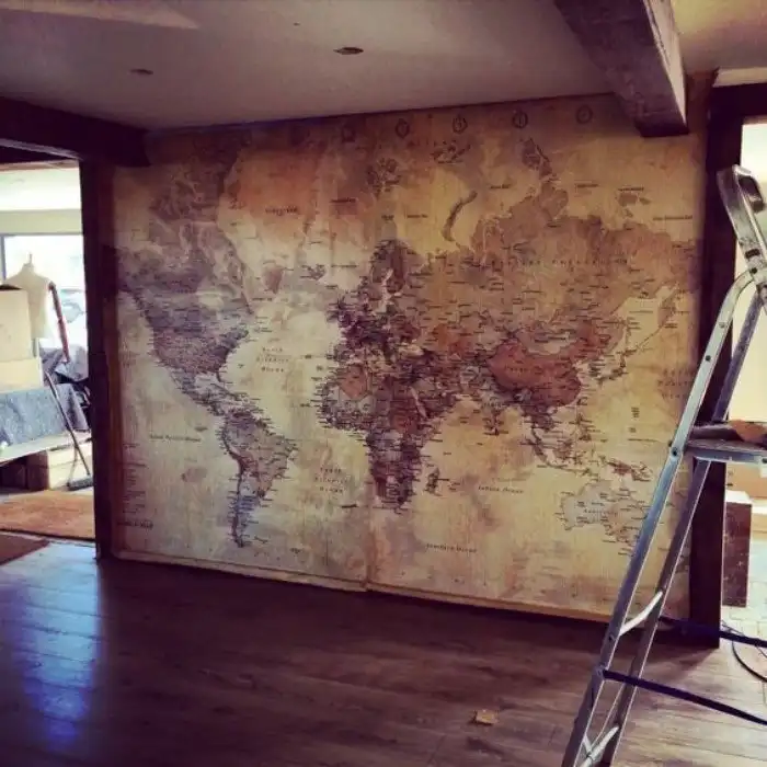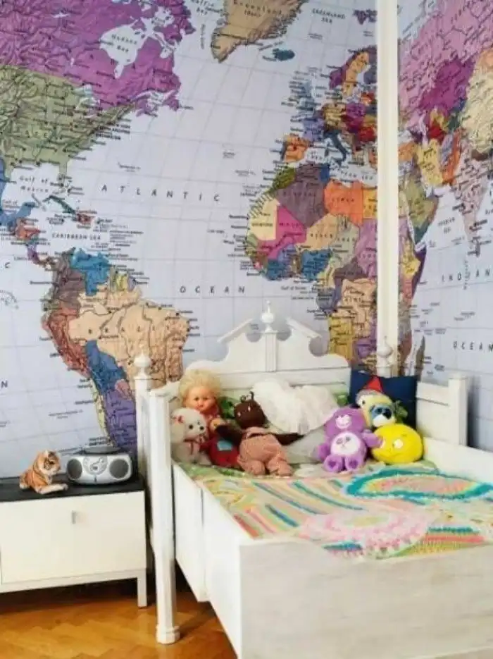 Приклеить ее так, чтобы стало хорошо. Хотя казалось бы, что такого особенного - ну карта и карта, кто ж их не видел. Но в интерьере такие решения смотрятся очень выгодно, да и к тому же на карте есть все - разные цвета, разные фигуры, линии, точки и контуры, чего, порой, не найти в обоях или краске.