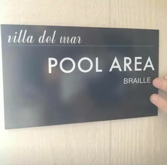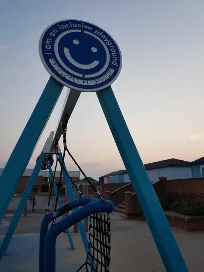 7. Знак со шрифтом Брайля на качелях