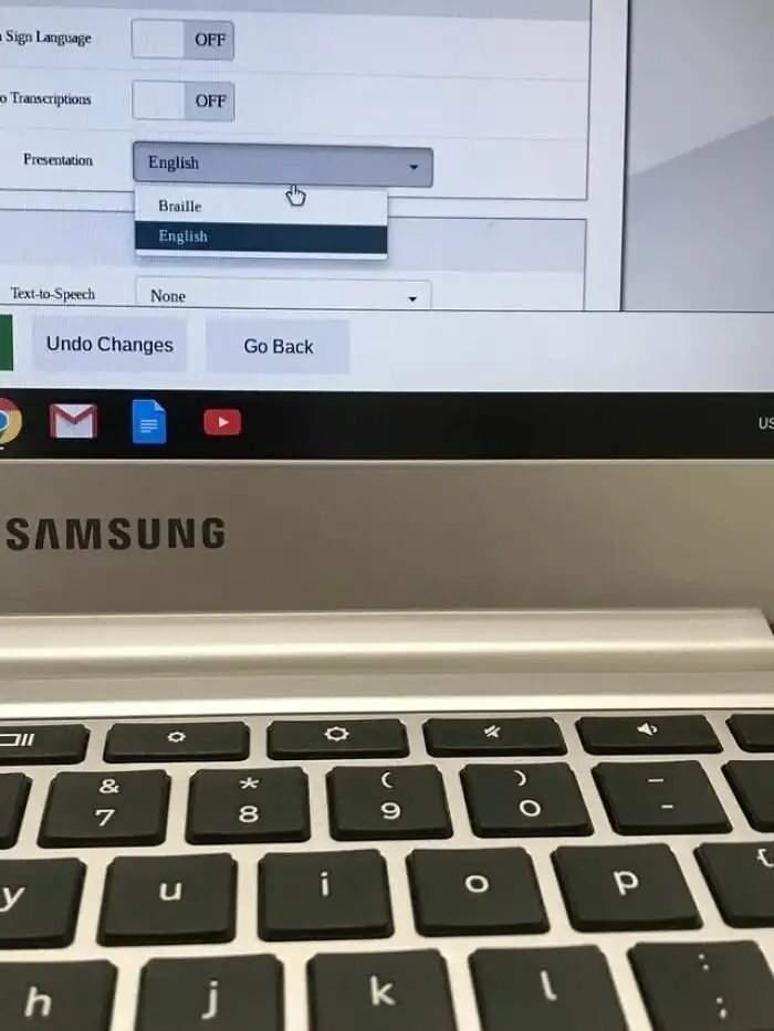 23. На сайте можно выбрать показ презентации на шрифте Брайля