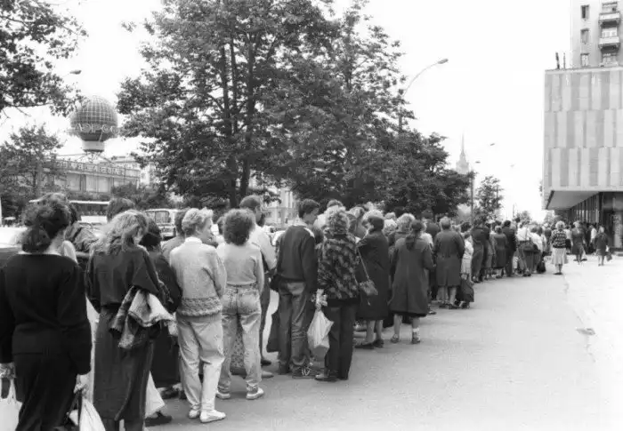 9. Очередь в Москве за впервые привезенными батончиками Марс-Сникерс-Баунти, 1990 год