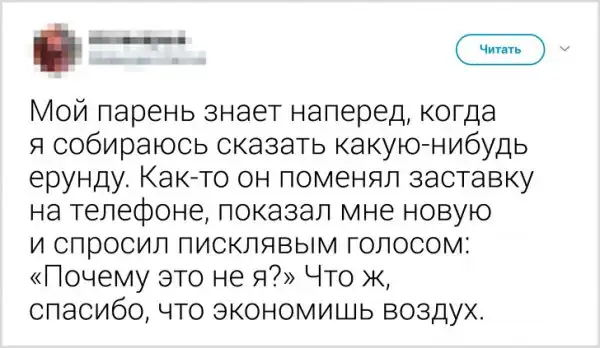 "Любимая спросила мое мнение о ее новой прическе. Прислал ей такое фото с подписью: "О, моя малышка великолепна!"