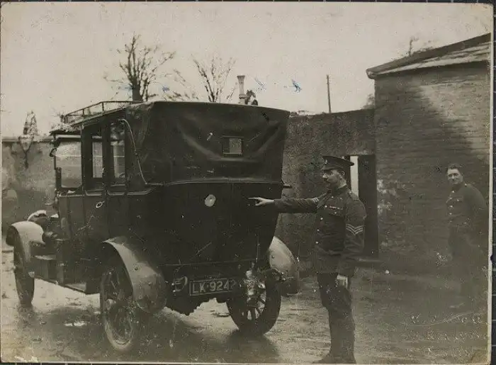 Боевики Ирландской республиканской армии совершили покушение на лорда-лейтенанта Джона Френча, но тот не пострадал. На снимке сержант указывает на пулевое отверстие.