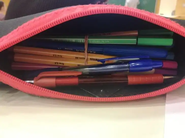 Завяжите резинкой редко используемые предметы в пенале, чтобы легко найти нужное