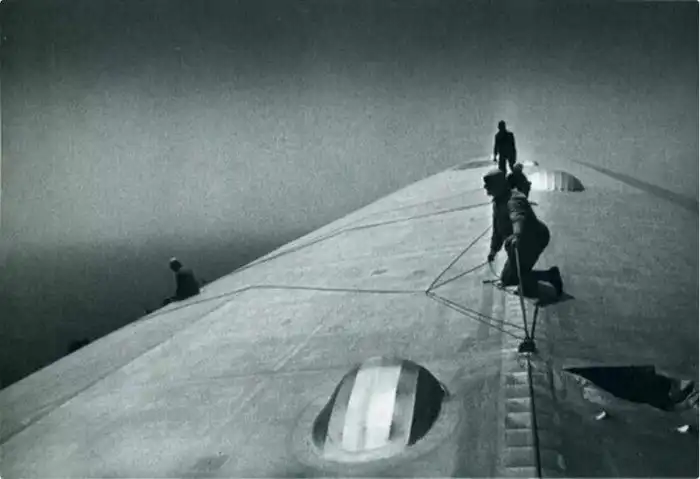 Ремонт корпуса дирижабля «Graf Zeppelin» во время полета над Атлантикой, 1934 год